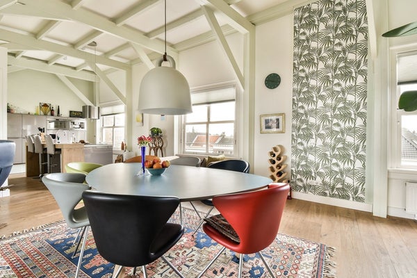 Daarnaast is er een gezellige bar aanwezig waar vandaan gewerkt, gekookt of gegeten kan worden. Door de hoge plafonds, de zichtbare balken constructie en de grote hoeveelheid ramen geeft deze ruimte een heel speels gevoel.