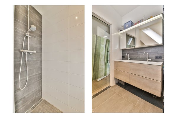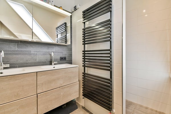 Middels de gang is de hoofdslaapkamer te bereiken welke beschikt over een eigen badkamer met dubbele wastafel, inloopdouche, toilet en handdoekenradiator.