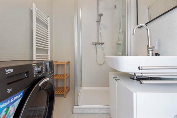 - badkamer voorzieningen en suite badkamer: inloopdouche, wastafel en spiegel.