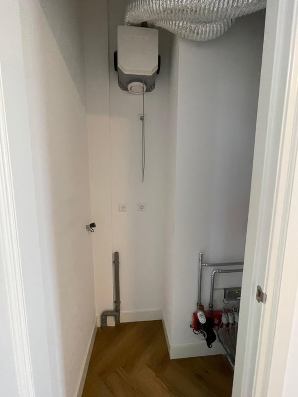 Technische ruimte, inclusief verwarmingssysteem en afzuigsysteem, ruimte voor wasmachine.