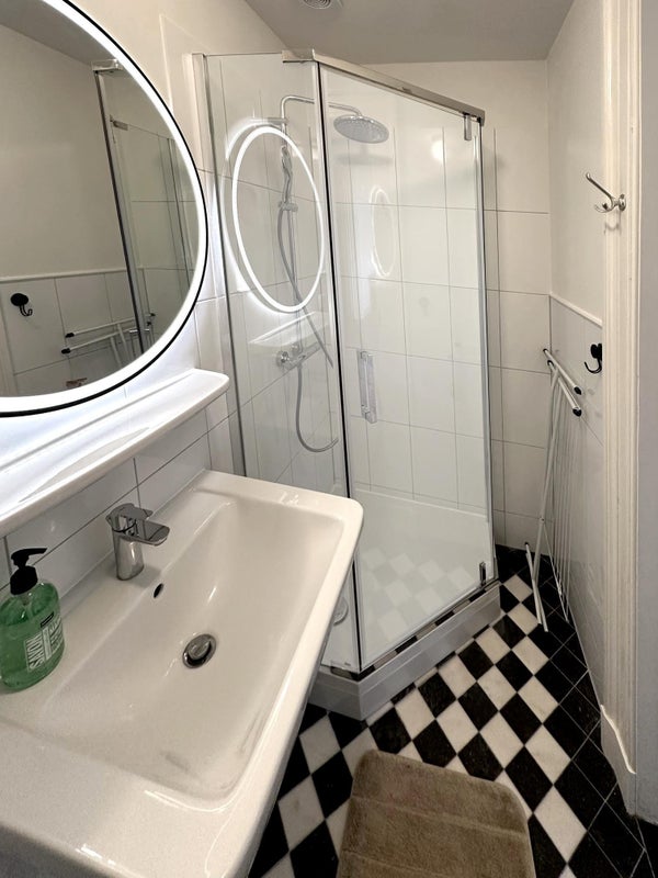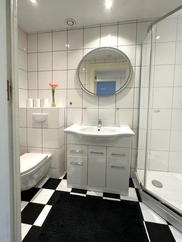 De luxe badkamer is recent gerenoveerd en uitgerust met een nieuwe wastafel, inloopdouche, toilet en ventilatiesysteem. Belangrijke kenmerken