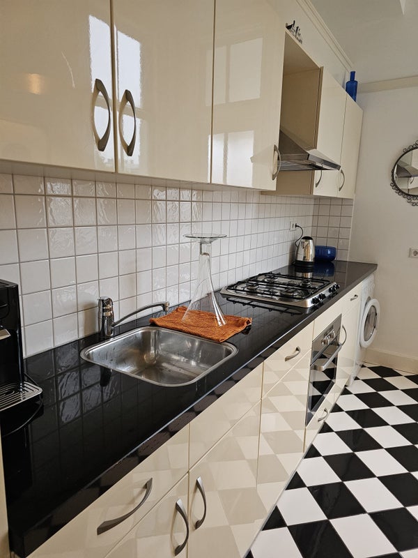 Aan de voorzijde zorgen grote ramen voor een lichte en open sfeer. De woonkamer en keuken zijn voorzien van moderne inbouwapparatuur, zoals een koel-vriescombinatie, vaatwasser, kookplaat, ruime kastruimte en een magnetron. Het appartement beschikt over een grote woonkamer en een ruime master bedroom.