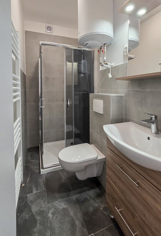 Daarnaast is er een aparte badkamer met douche, wastafel en toilet. Via de woonkamer heb je toegang tot een gemeenschappelijke buitenruimte, deze ruimte deel je met één ander appartement.