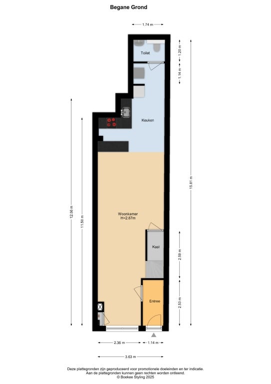 Begane grond: entree/hal, lichte woonkamer met moderne open keuken, apart toilet voorzien van fonteintje.