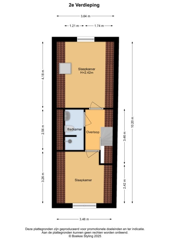 Tweede verdieping: overloop, ruime slaapkamer aan de voorzijde, tweede badkamer, en een vierde slaapkamer aan de achterzijde.