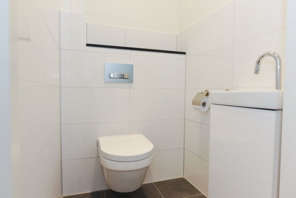 Tussen de woonkamer en de slaapvertrekken zijn de moderne badkamer en de separate toilet unit gesitueerd. De ruime en luxe badkamer voorzien van inloopdouche, ligbad en wastafel.