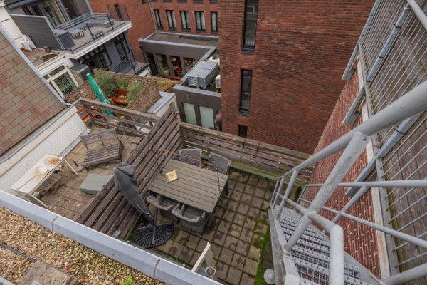 Tweede verdieping: Een verdieping met karakter dankzij de hoge, authentieke plafonds. De overloop geeft toegang tot de badkamer voorzien van een douchecabine, wastafelmeubel en een tweede toilet. Er is een aparte wasruimte waar de wasmachine en droger op elkaar kunnen worden opgesteld. De slaapkamer is royaal bemeten en beschikt over een vaste kastenwand. Via dubbele openslaande deuren bereik je het eerste dakterras; een heerlijke plek om te ontspannen in de ochtendzon. Vanuit hier leidt een trap naar het tweede, hoger gelegen dakterras dat een werkelijk adembenemend uitzicht biedt over de binnenstad. De Grote Bavo vormt hier het absolute middelpunt van het panorama.