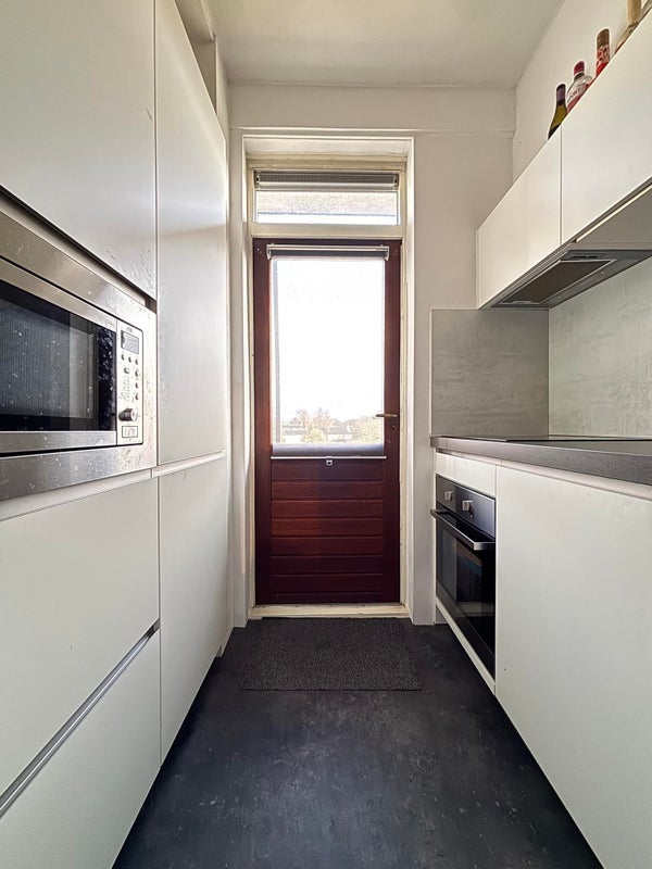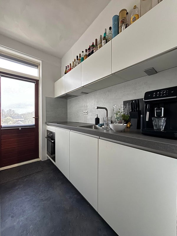De keuken is voorzien van een inductiekookplaat, oven, magnetron, koelkast, vaatwasser, wastafel en wasemkap.