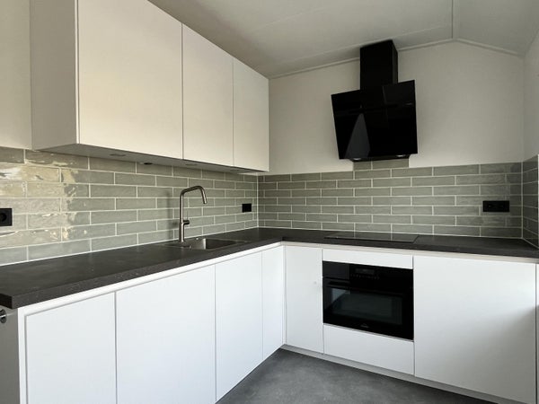 De gezellige woonkamer is maar liefst 25 m2 en is voorzien van grote ramen die een overvloed aan natuurlijk licht binnenlaten, waardoor de ruimte nog uitnodigender aanvoelt. De keuken bevindt zich aan de achterzijde van de woning en beschikt over moderne inbouwapparatuur.
