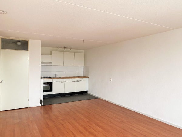 Woonkamer met open keuken en toegang tot het balkon