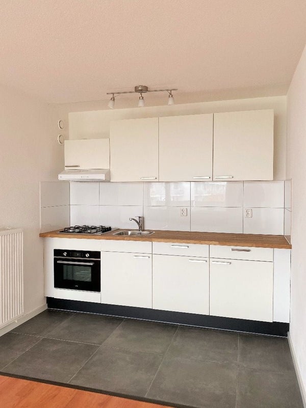 Keuken voorzien van gaskookplaat, oven en afzuigkap