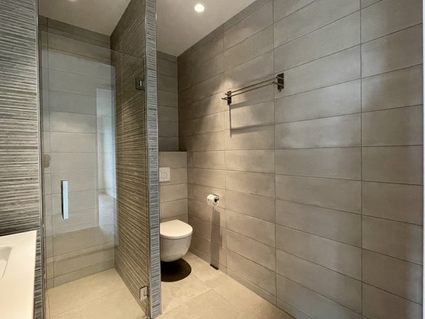 In de luxe badkamer is een douche, dubbele wastafel, spiegel (mét ledverlichting) en toilet aanwezig.