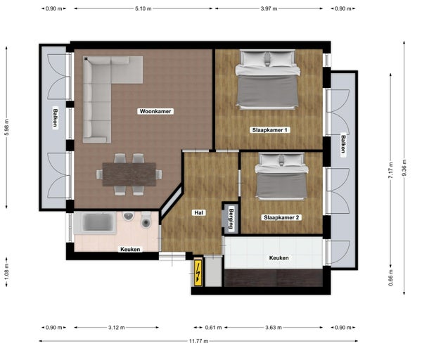 Let op! de bijgevoegde plattegrond is van een vergelijkbare woning. En is bedoeld voor een "algemene indruk". Dus de plattegrond komt niet 100 % overeen. Zo zijn de balkons korter.