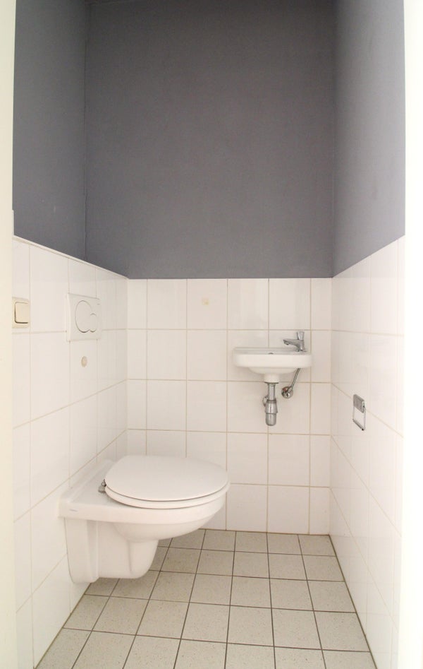 Gasten toilet deels betegeld en voorzien van fonteintje.