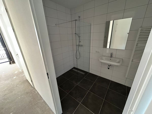 - (Deels) betegelde badkamer voorzien van inloopdouche met glazen douchewand en wastafel met spiegel;
