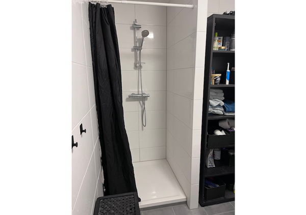- Net afgewerkte badkamer met inloopdouche, toilet, vaste wastafel en aansluiting wasapparatuur.