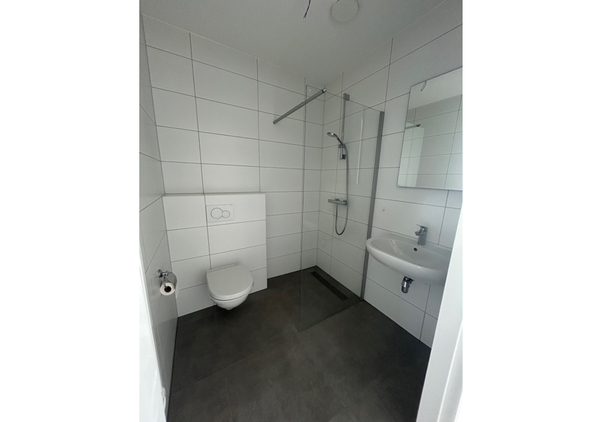- Betegelde badkamer voorzien van inloopdouche en wastafel;