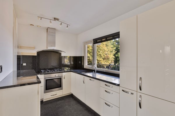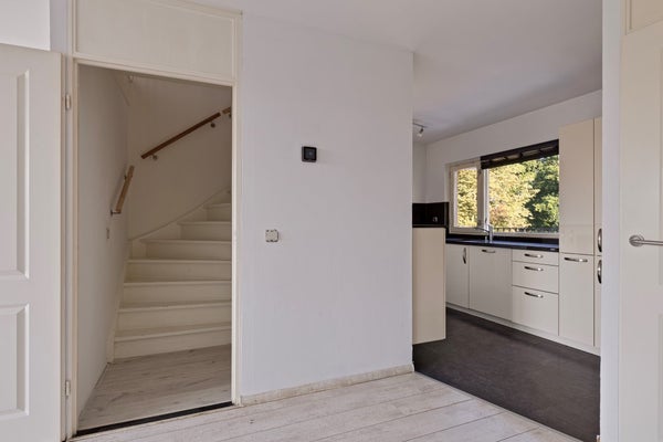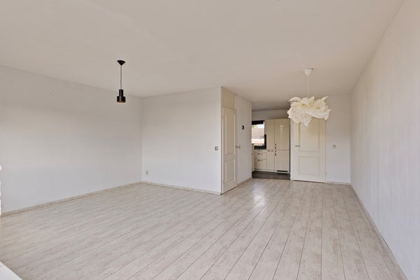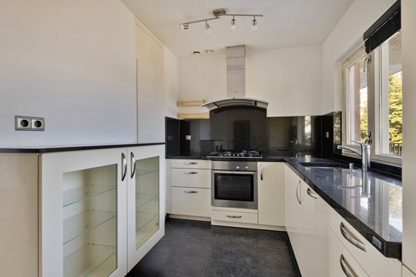 De woonkamer voelt direct uitnodigend aan en biedt genoeg ruimte voor een gezellige zit- en eethoek. Dankzij de grote ramen geniet je hier de hele dag van natuurlijk licht. De keuken sluit mooi aan en heeft alles wat nodig is. '