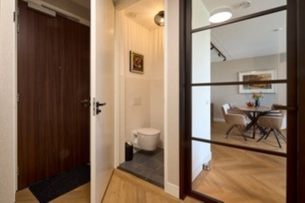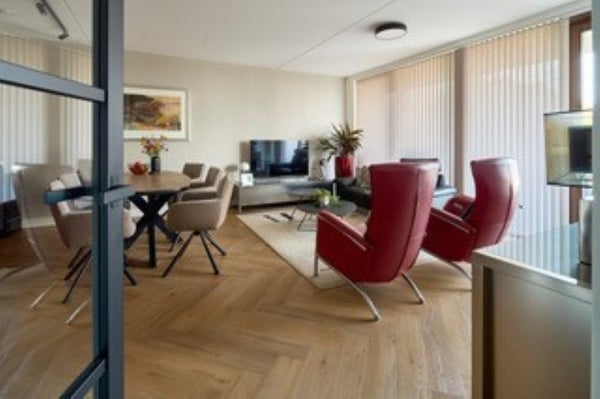 Bij binnenkomst valt direct de kwaliteit en afwerking op: een ruimtelijk gevoel door de slimme indeling, mooie lichtinval en stijlvolle materialen. De woonkamer met open keuken vormt het hart van de woning, een fijne plek om te ontspannen of gasten te ontvangen.