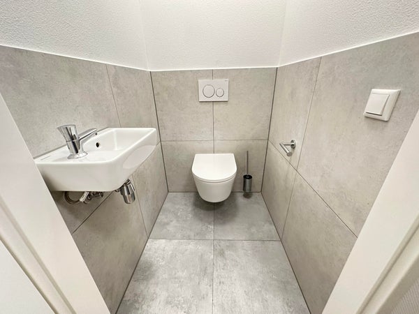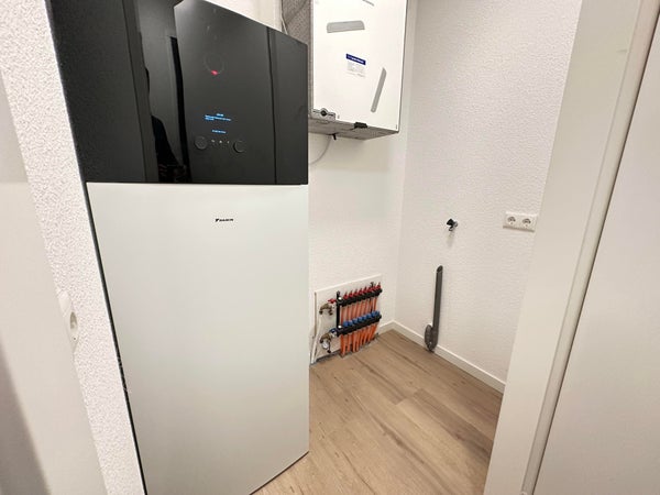 Separaat toilet voorzien van fonteintje. Aparte bergruimte met technische voorzieningen.