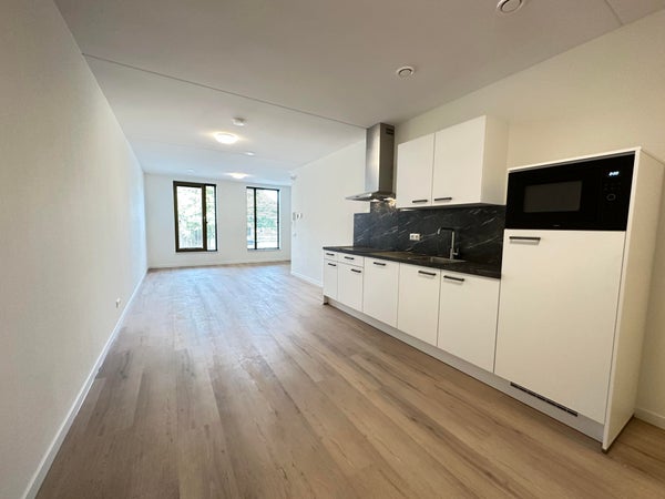 Dit appartement is ca. 54 m² en gelegen op de begane grond. Het wordt opgeleverd met een luxe keuken, PVC vloer met vloerverwarming, verduisterende gordijnen en verlichting. Daarnaast maakt het appartement gedeeld gebruik van de zonnepanelen, die op het dak zijn gemonteerd.