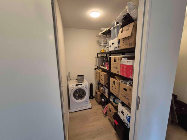 - Inpandige berging voorzien van warmte installatie en aansluitingen wasmachine en droger;