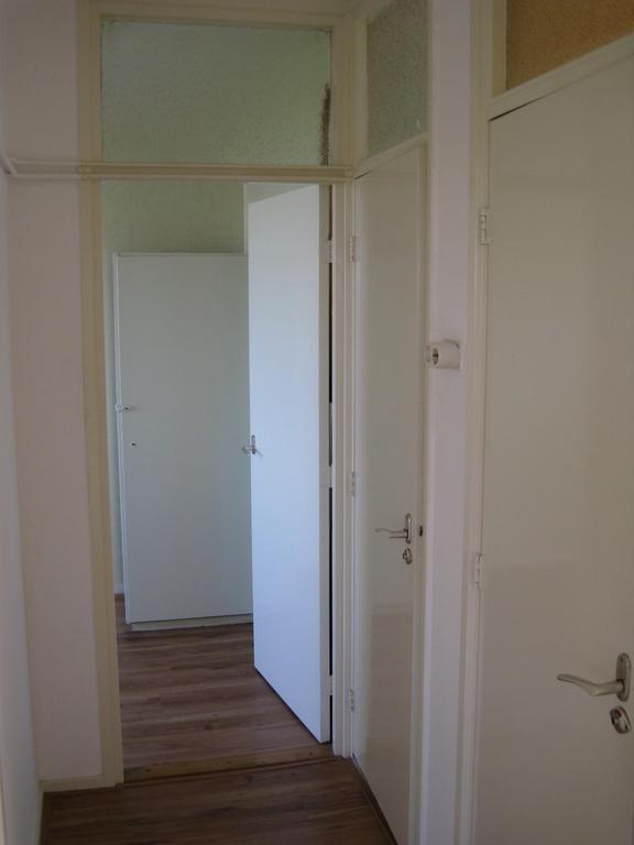 entree, tochtportaal, hal met toilet en fontein. Dichte keuken met vaste kast, elektrische boiler en eenvoudig keukenblok v.v. spoelbak. 2 Ruime slaapkamers aan voorzijde complex. Badkamer, wasmachine-aansluiting, wastafel en douchehoek. Ruime L-vorm woonkamer met dubbele vaste kast en balkon op het Zuiden. Berging/box in het souterrain v.v. elektra.
