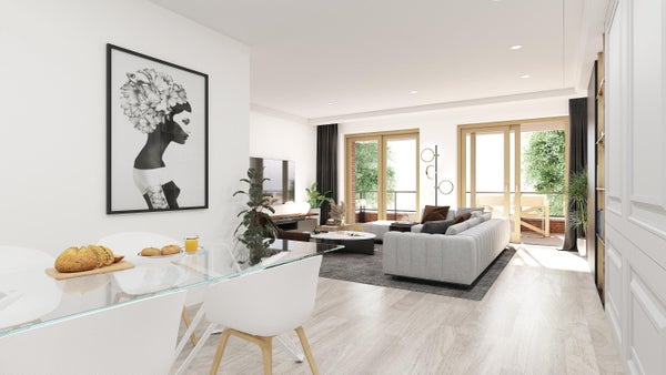 Dit moderne appartement (ca. 102m²) is gelegen op de 1e verdieping. De woning is goed voorziend met vloerverwarming, een moderne keuken, breed balkon (ca. 12m²), een badkamer met inloopdouche en badkuip, 2 ruime slaapkamers en nog 2 extra ruimtes voor al uw overige spullen.