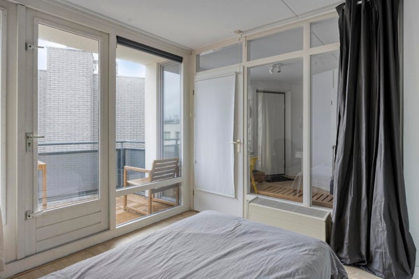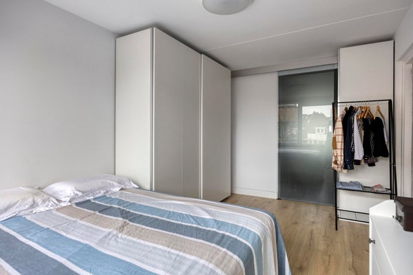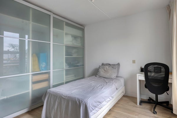Slaapkamer 1 is voorzien van een eenpersoonsbed, wandkast en bureau. Vanuit deze kamer is het balkon bereikbaar.