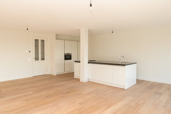 Via het trappenhuis of de lift komt u op uw eigen woonverdieping bij de toegang tot het appartement. Er is een royale hal, toilet met fontein, ruime woonkamer met luxe open keuken en dubbele openslaande deuren naar het riante balkon op het zuiden. De open keuken is voorzien van een inductiekookplaat en downdrafter, spoelbak en vaatwasmachine. In de hoge kastenwand is een koel-/vriescombinatie geplaatst en een combi-oven geplaatst.