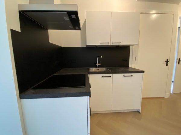 Het appartement wordt gestoffeerd opgeleverd en er zijn o.a. recent geverfde wanden, een nette pvc-vloer en dubbel glas. Je komt het appartement binnen in de lichte hal. Via deze hal bereik je de open keuken en woonkamer. Deze luxe keuken is voorzien van diverse inbouwapparatuur. Dit zijn o.a. een combi-oven, vaatwasmachine, koel- vriescombinatie en een 4-pits inductiekookplaat.
