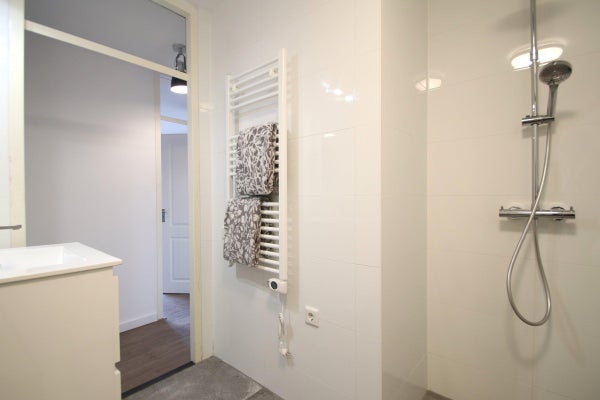 Het appartement beschikt over twee slaapkamers, beiden goed van formaat. De hoofdslaapkamer is tevens voorzien van inbouwgarderobekast. De badkamer is uitgevoerd in neutrale kleurstelling en voorzien van handdoekenradiator, inloopdouche, bad en wastafel met meubel en spiegel.