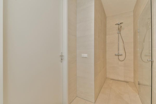 Via de gang bereik je de goed bemeten slaapkamer. De luxe badkamer is uitgerust met een inloopdouche, dubbele wastafel met meubel en design radiator.