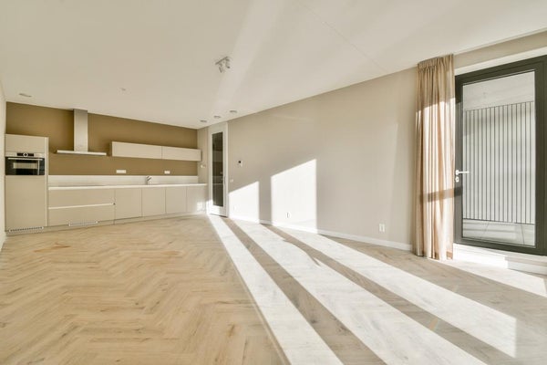 De royale woonkamer heeft dankzij de hoge raampartijen over de gehele voorzijde veel lichtinval. De moderne open keuken is voorzien van een inductiekookplaat met afzuiging, Koelkast met vriesvak combi-oven en afwasmachine. De woonkamer biedt voldoende plek voor een zit- en eethoek en geeft tevens toegang tot de loggia.