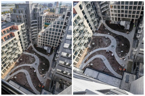 Het gebouw omvat een aangelegde binnentuin van meer dan 1.000 m², ontworpen door landschapsarchitect Wim Voogt (OKRA), exclusief toegankelijk voor bewoners van Notting Hill.