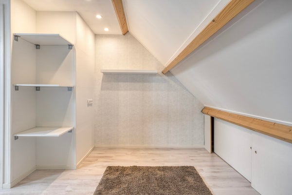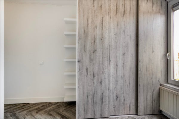 De kamer beschikt over een ruime inbouwkast met legplanken en biedt daarmee voldoende opbergruimte..