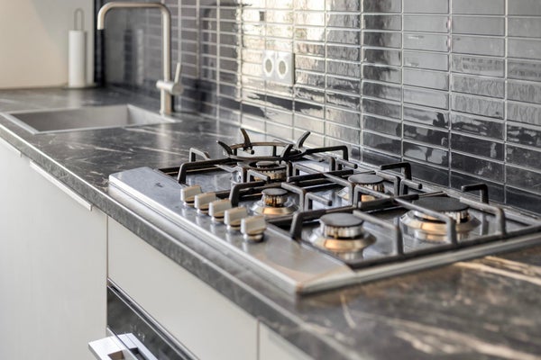 De moderne keuken is uitgerust met alle gemakken: koel-vriescombinatie, vaatwasser, 5-pits gasfornuis, afzuigkap, combi-oven en voldoende kastruimte. Vanuit de keuken heeft u directe toegang tot het ruime dakterras