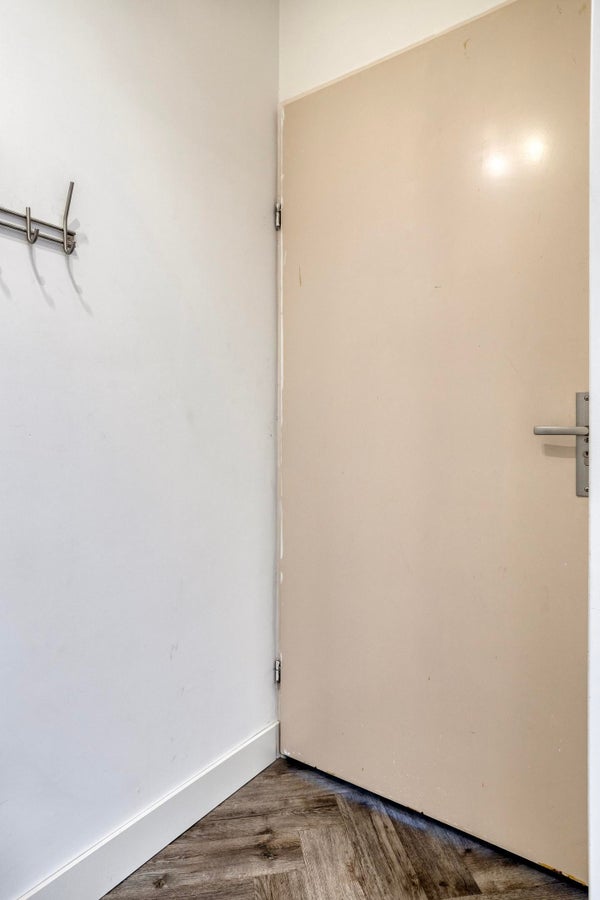 Bij binnenkomst via de voordeur bereikt u een klein portaal met toegang tot de toiletruimte en de woonkamer.