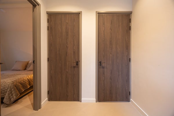 De woning biedt twee comfortabele slaapkamers die naast elkaar zijn gelegen aan de achterzijde van het appartement. De hoofdslaapkamer heeft een ruimtelijk gevoel dankzij de grote raampartij, de tweede slaapkamer is ideaal als logeer-, werk- of kleedkamer.