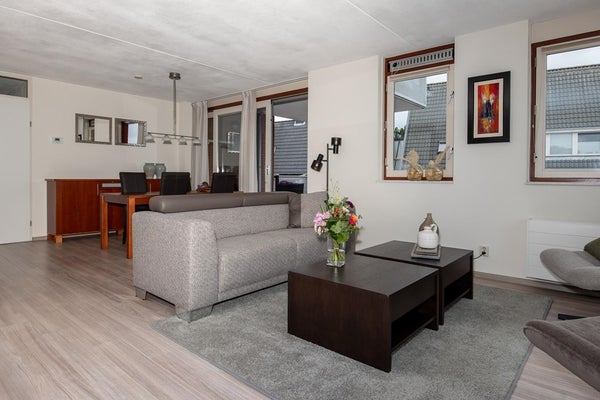 Bij binnenkomst in het appartement wordt u verwelkomd door de entree met intercom, lift en trapopgang. Het appartement zelf bevindt zich op de tweede verdieping. Bij binnenkomst in het appartement vindt u een ruime woonkamer met ramen op de westkant en een adembenemend uitzicht, elk seizoen komt hier voorbij. De woonkamer is uitgevoerd met wanden in lichte kleurstelling en een moderne laminaatvloer. Aan de westkant vindt u bovendien het balkon/loggia, een heerlijke plek om te eten of samen met familie of vrienden een drankje te drinken.