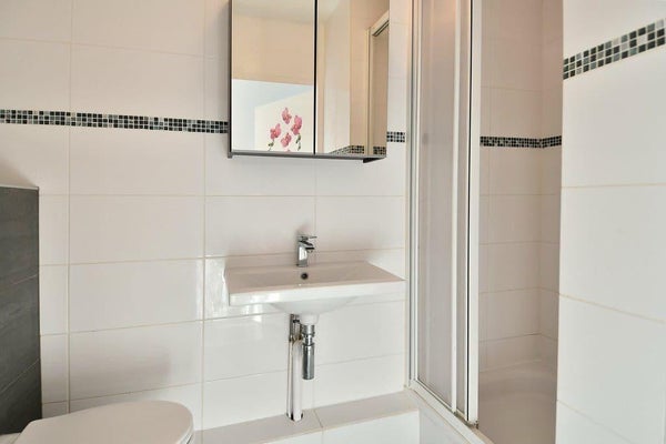 Ruime slaapkamer aan de voorzijde, nette badkamer met wastafel, inloopdouche en toilet.