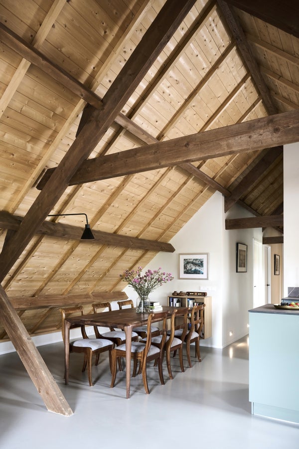 De Loft ademt ruimte en licht. Het hoge plafond, de open kap en de zichtbare dakspanten zorgen voor een indrukwekkend loftgevoel, terwijl grote dakramen een overvloed aan daglicht binnenlaten en prachtige zichtlijnen creëren. Historisch karakter en hedendaagse luxe gaan hier moeiteloos hand in hand. Het hart van de woning wordt gevormd door de premium eilandkeuken. Stijlvol ontworpen, hoogwaardig afgewerkt en volledig uitgerust, een plek waar koken en genieten vanzelf samengaan. Dankzij de open indeling ontstaat een natuurlijke verbinding tussen koken, wonen en eten.