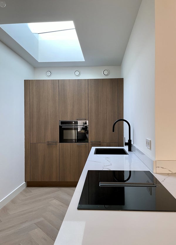 · Strakke wanden en een elegante visgraat PVC-vloer met vloerverwarming én -koeling