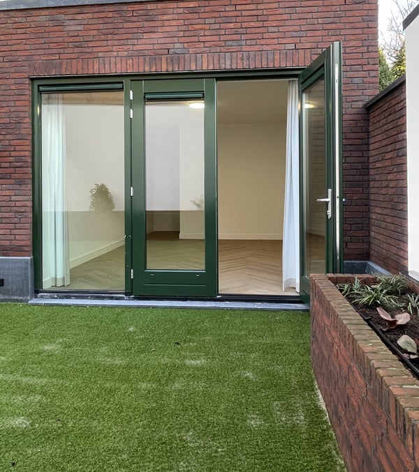 Bij binnenkomst valt direct de ruimte maar ook het vele licht op. Vanuit de royale woonkamer loop je via de openslaande deuren zo je eigen tuin van 60 m² in, een plek waar je in de zomer uitgebreid kunt dineren of ’s avonds gezellig een drankje drinkt. De verhuurder zorgt bovendien voor vaste plantenbakken vol groen, zodat je tuin meteen een sfeervolle uitstraling heeft. De keuken is modern, strak en voorzien van luxe inbouwapparatuur. Of je nu een uitgebreid diner op tafel tovert of snel iets in de oven schuift, hier kook je altijd met plezier. Verder beschikt het appartement over twee slaapkamers: een royale master bedroom met openslaande deuren naar de tuin. Hoe fijn is het om ’s ochtends de deuren open te slaan en meteen de frisse buitenlucht binnen te laten? En een tweede kamer die ideaal is als slaap-/logeerkamer en waar óók een twee-persoons bed in past of als kantoor. De badkamer straalt rust en luxe uit, met een comfortabele inloopdouche en een stijlvol wastafelmeubel. Praktisch is er ook gedacht aan voldoende ruimte voor een wasmachine en droger. Daarnaast vind je een apart toilet en een technische ruimte voor extra bergruimte.