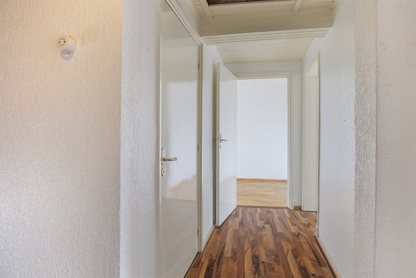 De voordeur bevindt zich aan de zijkant van het pand, gelegen aan de oprit welke eveneens toegang verleent aan de loods met parkeerplaatsen. 1 parkeerplaats is gereserveerd voor de bewoners van deze bovenwoning. In de hal/entree die is voorzien van een tegelvloer, treft u de goed verzorgde meterkast en een toiletruimte.