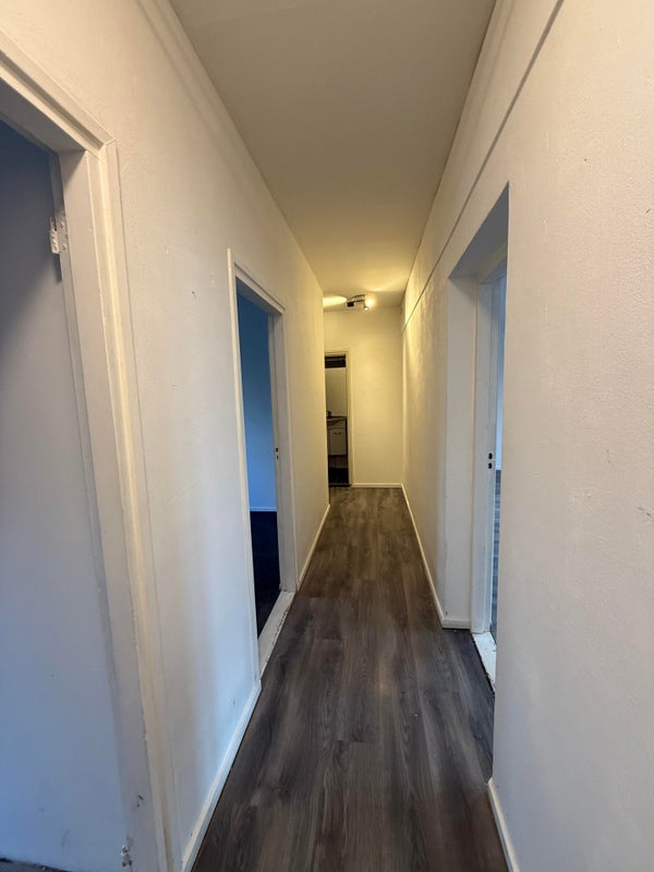Bij binnenkomst is de gang die toegang biedt tot alle kamers.