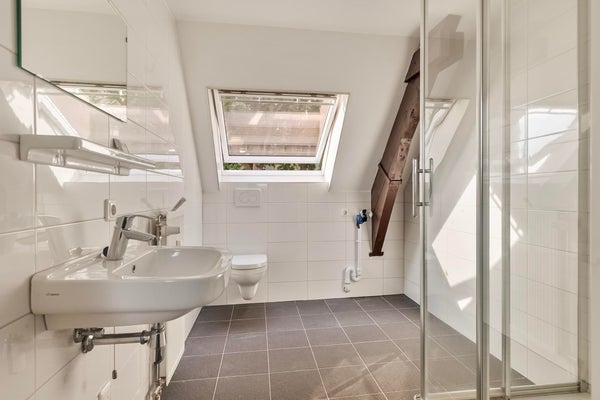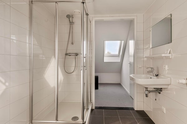 Via de woonkamer is tevens de trap naar de verdieping te vinden. Op de verdieping zijn de badkamer en de slaapkamer bereikbaar. De Badkamer is v.v. een douche, 2e toilet, wastafel en wasmachine aansluiting.