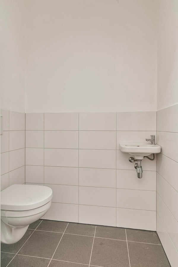 Binnenkomst in de hal/entree, hierbij bevinden zich o.a. de toilet, meterkast en toegang tot de woonkamer. De toilet is deels betegeld en v.v. hangcloset en fonteintje.