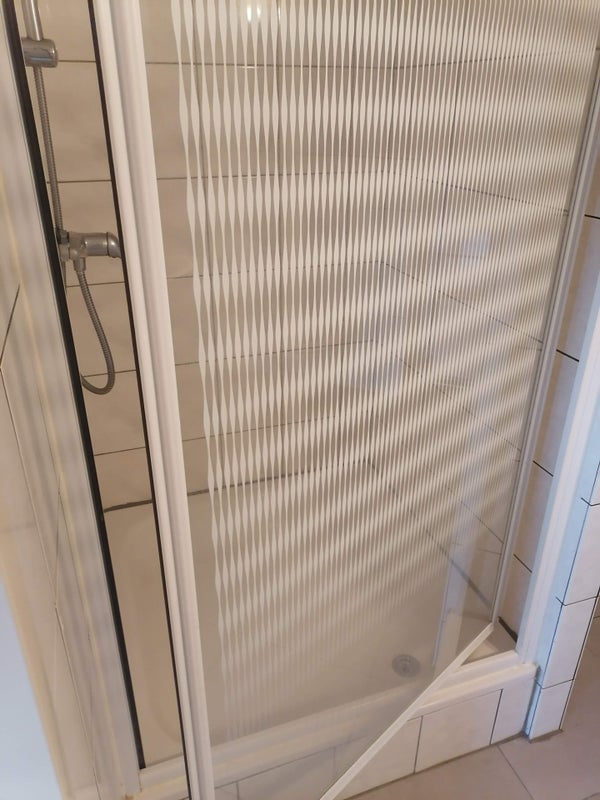 - Modern betegelde badkamer met inloopdouche en glazen deur