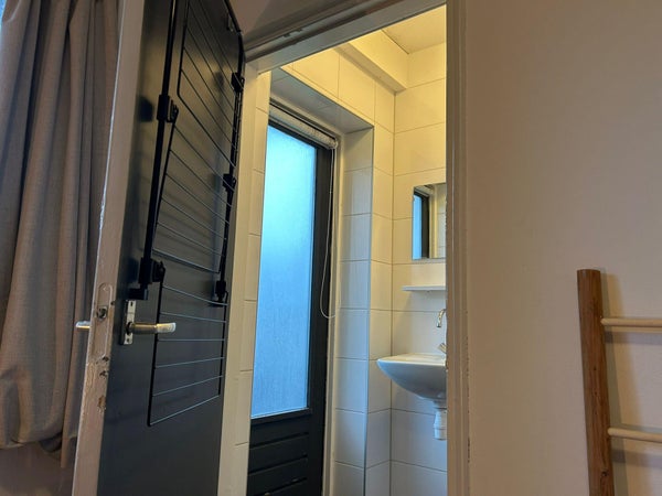 De badkamer beschikt over een inloopdouche en een wastafel.